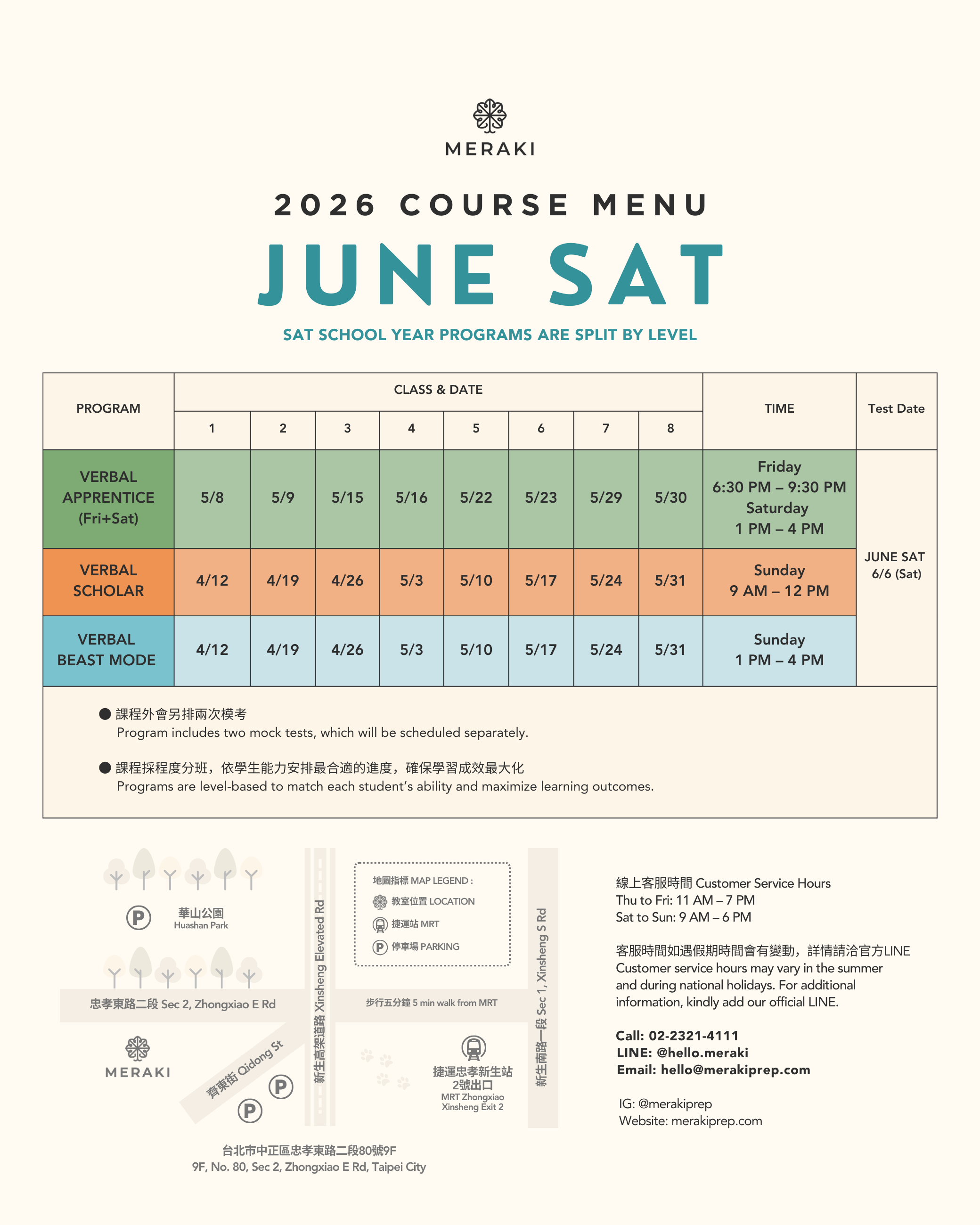 June SAT program only offers verbal classes. Please LINE us if you're seeking SAT Math assistance.